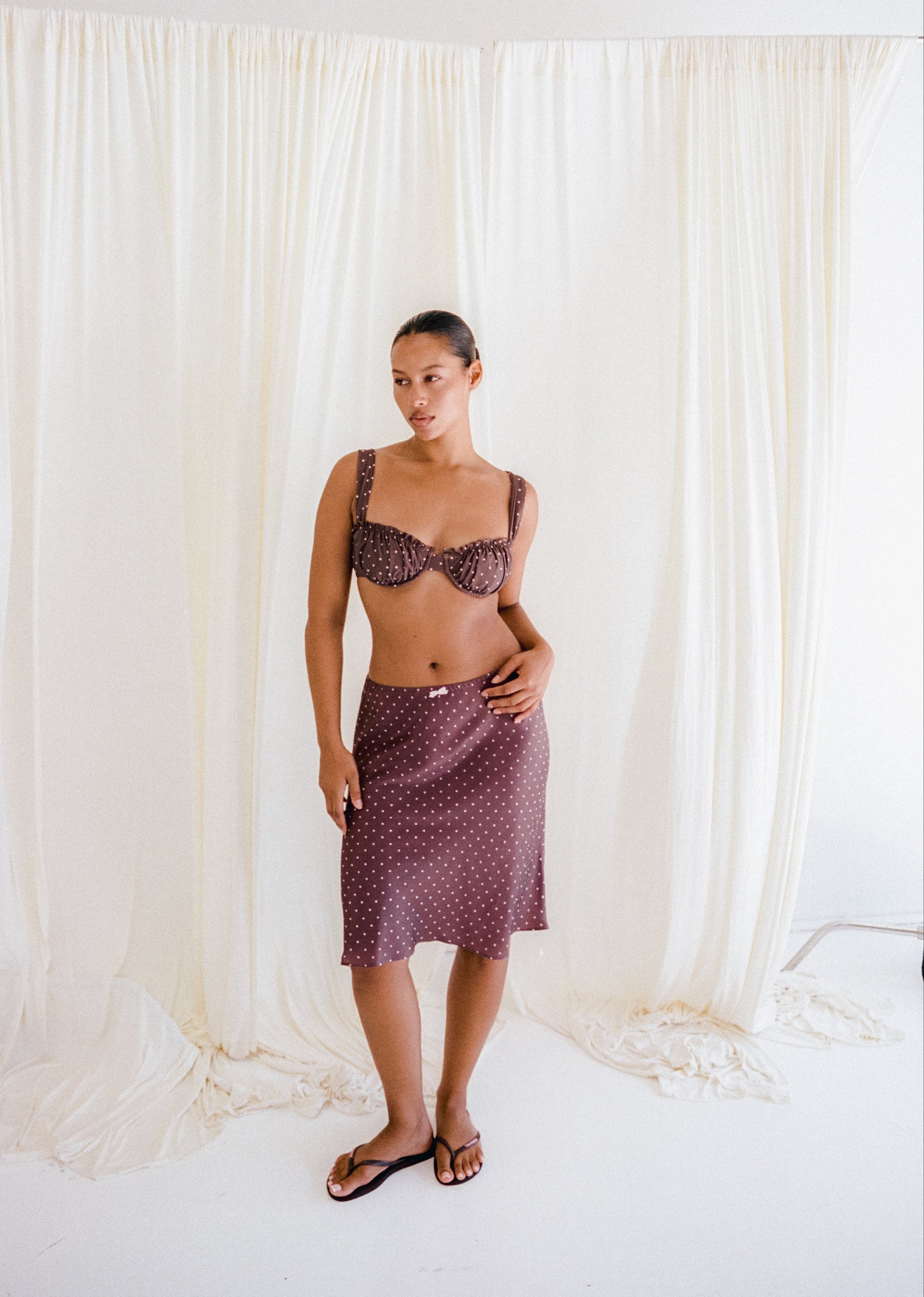 Mabel Bias Skirt - Cocoa Polka